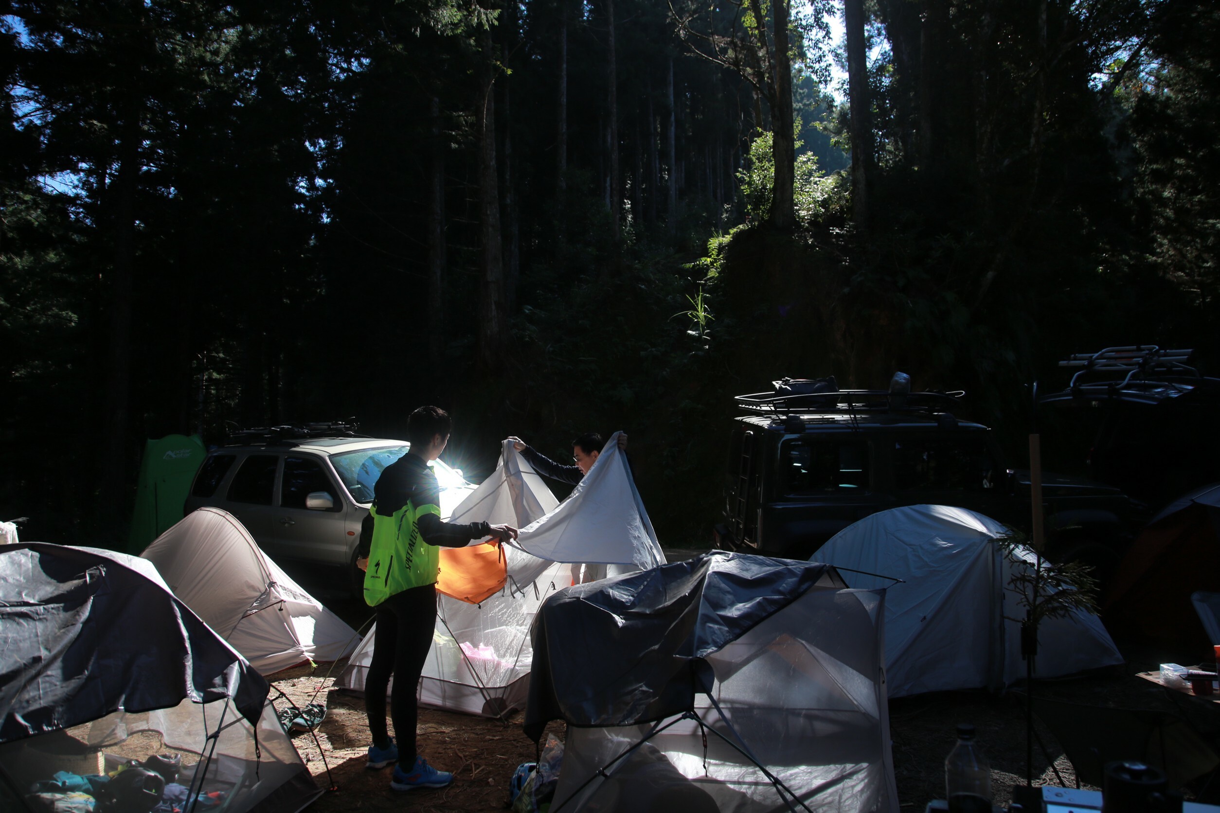 吃飽喝足後,開始搭設帳棚。