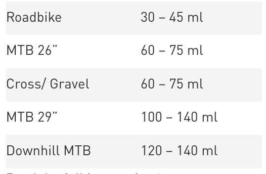 在輪胎中注入以下容量的補胎液: