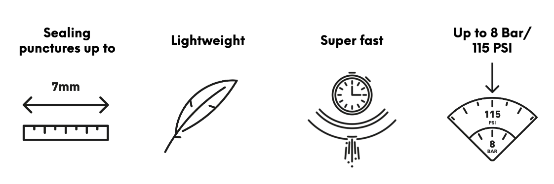 可以使用Co2 | 密封穿孔達 7 毫米 | 適用於高達 115PSI 的所有輪胎品牌 | 不結塊 | 地球友好