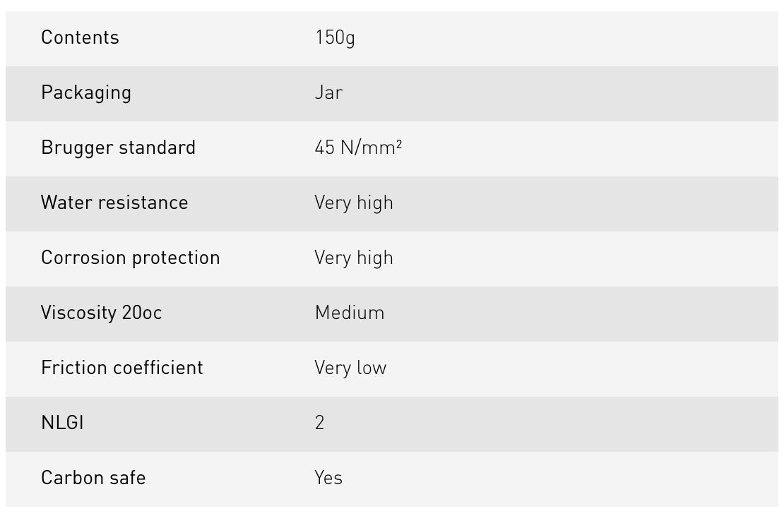 這種潤滑膏的潤滑和保護特性有助於防止腐蝕和減少磨損。這種優質潤滑膏可保護您的培林免受鹽和汗水的侵害。Dynamic Galli Grease Pro 防水,可在所有溫度下使用。穩定的黏度提供了較長的使用壽命。