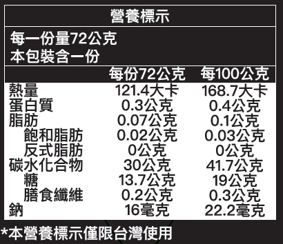 備註:*本產品生產製程廠房,其設備或生產管線有處理堅果,