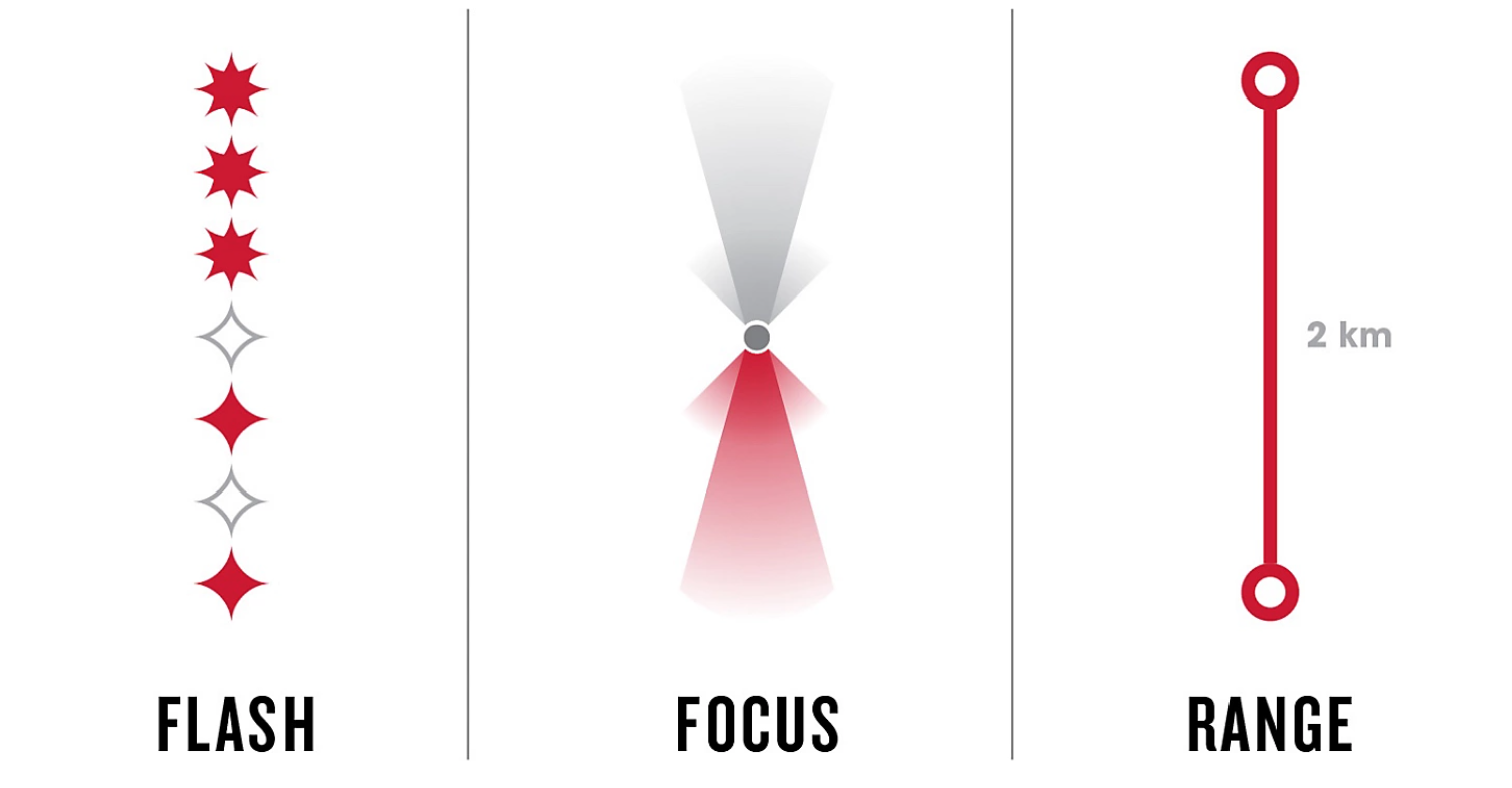 4. 專門設計的焦距,閃光和範圍閃爍模式,白天可見度高達2公里
