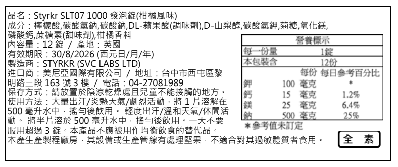 SLT07 是目前市面上單錠含量最高的四合一電解質發泡錠,