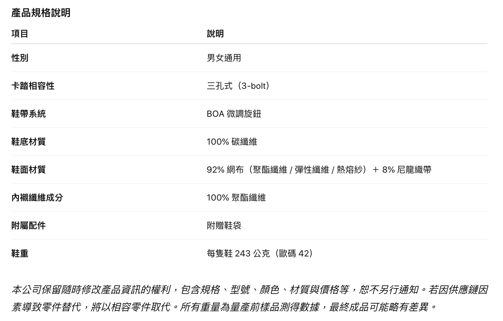 5. 100% OCLV 碳纖維鞋底,提供極佳的動力傳導與踩踏效率